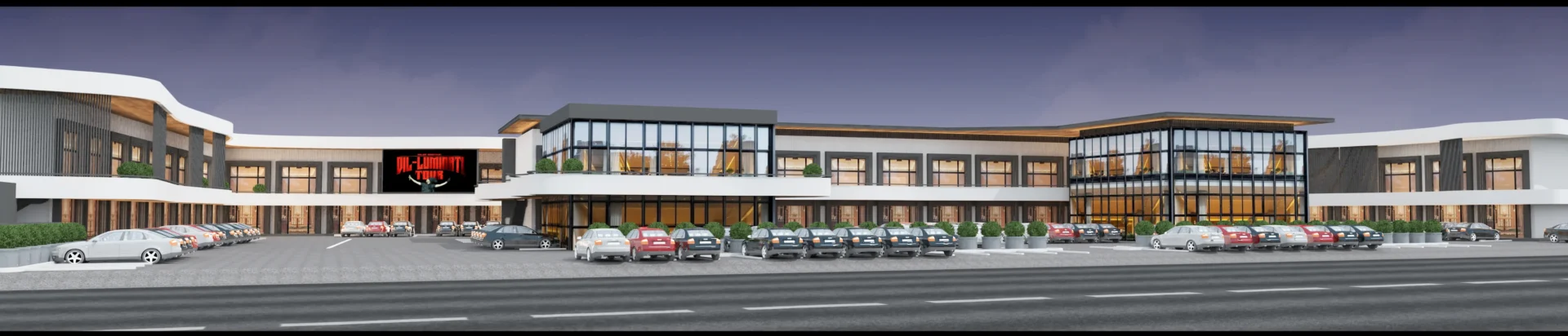 The layout is carefully planned to accommodate large-scale commercial requirements, with emphasis on seamless customer movement, ample parking, and flexible interior spaces. Clean lines, modern materials, and a refined façade language define the overall aesthetic, creating a strong brand presence within the surroundings.